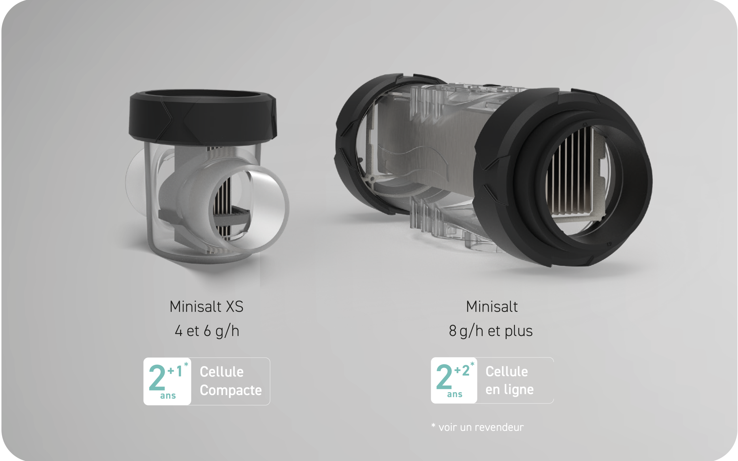 Fonctionnement pour toute salinité supérieure à 2,5g/l (NS) et 1,5g/l (LS) sans limite haute
