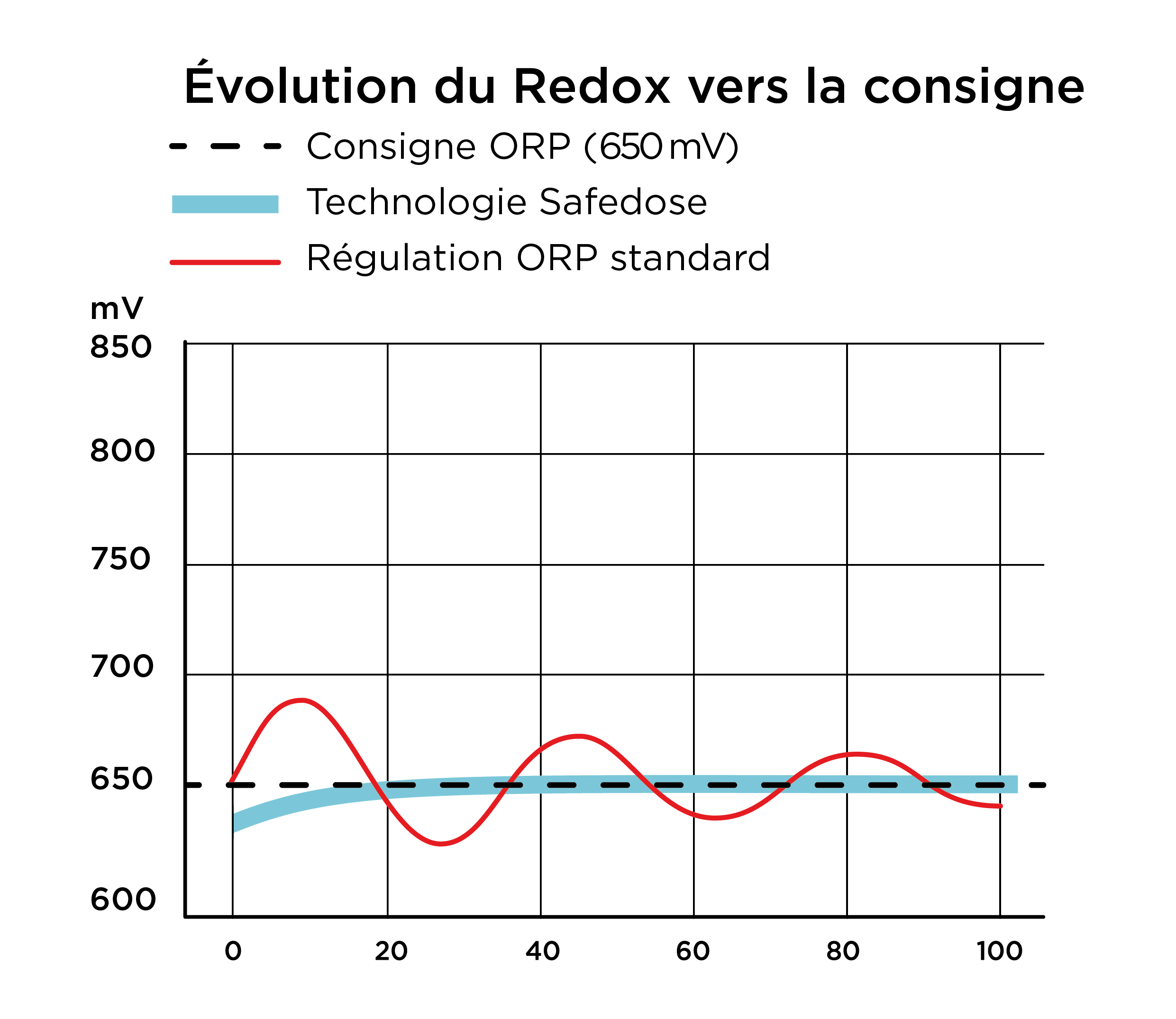 Dosage ajusté par cycles alternés de marche et de pause. Ainsi, le temps d’injection est réduit progressivement à mesure que l’on s’approche du point de consigne.